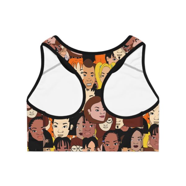 Our Daria sports bra displays beautifully illustrated faces of the iconic animated cast in vibrant, complementary colors. Featuring Daria's characteristic expression alongside Jane, Quinn, and other memorable characters, this piece combines athletic functionality with nostalgic flair. The handcrafted illustrations capture the essence of each character, creating a unique tribute to this beloved MTV classic.